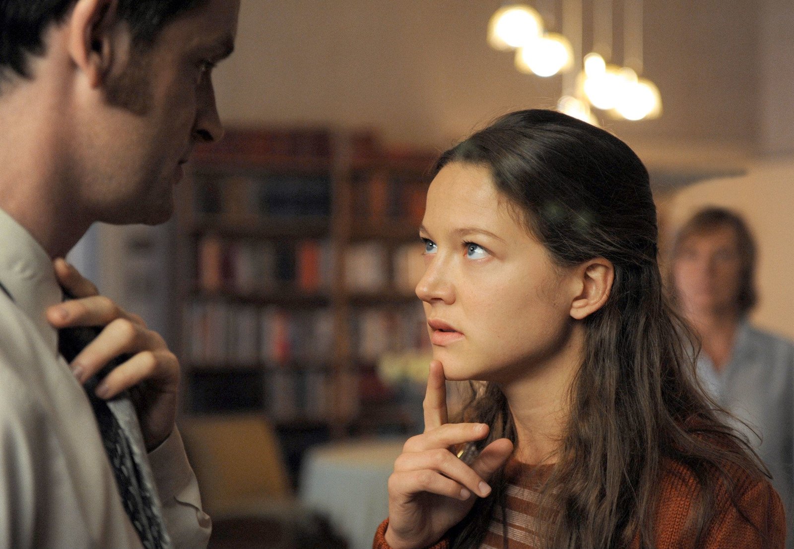 Julia. . ARD WEISSENSEE, neue Familienserie mit (6 Folgen), Folge 5 "Das Konzert", am Dienstag (12.10.10) um 20.15 Uhr im Ersten. Julia (Hannah Herzsprung, r.) will von Falk (Jˆrg Hartmann, l.) wissen, wo ihre Mutter hingebracht wurde. Im HG Marlene (Ruth Reinecke). © ARD/Julia Terjung - honorarfrei, Verwendung gem‰fl der AGB im engen inhaltlichen, redaktionellen Zusammenhang mit genannter ARD-Sendung bei Nennung: "Bild: ARD/Julia Terjung" (S2). ARD Programmdirektion/Bildredaktion, Tel. 089/59003879, Fax 089/5501259, mail bildredakton@daserste.de.Bild: © MDR