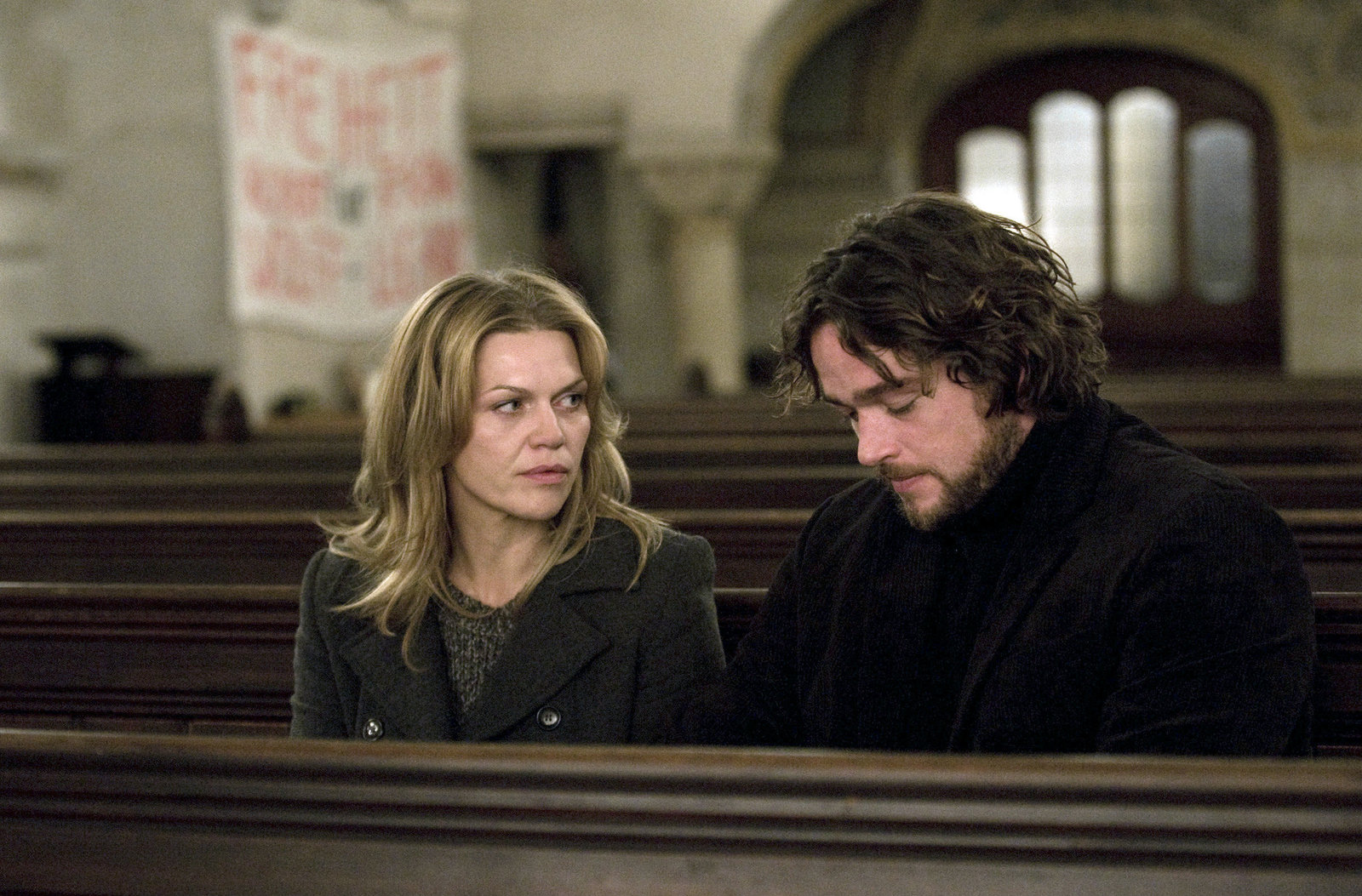 Der ÜberfallZwischen Vera (Anna Loos, l.) und Robert (Ronald Zehrfeld, r.) kommt es zu einer Aussprache in der Kirche.Bild: © MDR/Julia Terjung