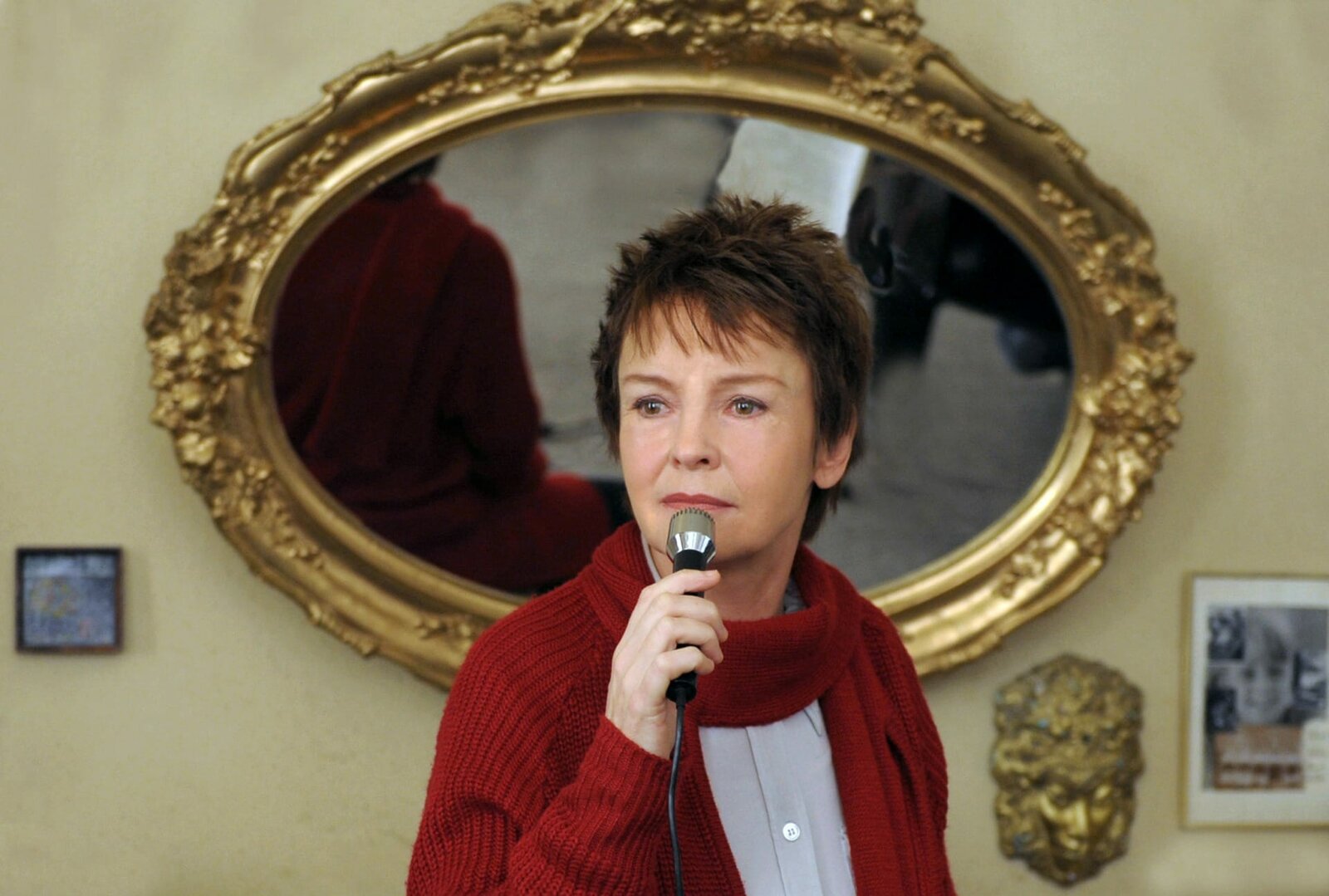 Am Ende des Tages. . ARD WEISSENSEE, neue Familienserie mit (6 Folgen), Folge 6 "Am Ende des Tages", am Dienstag (19.10.10) um 20.15 Uhr im Ersten. Fassungslos hˆrt Marlene (Ruth Reinecke) zu, wie ihre Rivalin Dunja in ihrem Haus ein staatskritisches Lied singt. © ARD/Julia Terjung - honorarfrei, Verwendung gem‰fl der AGB im engen inhaltlichen, redaktionellen Zusammenhang mit genannter ARD-Sendung bei Nennung: "Bild: ARD/Julia Terjung" (S2). ARD Programmdirektion/Bildredaktion, Tel. 089/59003879, Fax 089/5501259, mail bildredakton@daserste.de.Bild: © ARD
