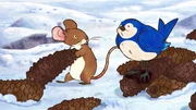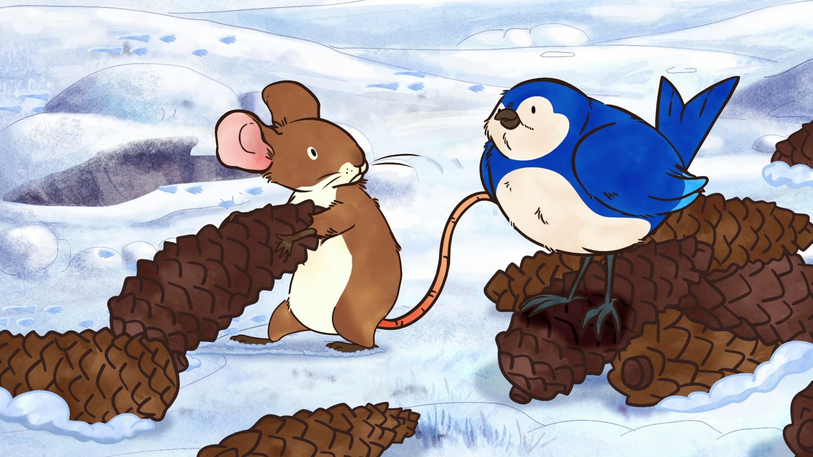 Der GlücksstockDer kleine Feldmaus hat beim Spielen aus Versehen den Tannenzapfenbaum kaputt gemacht. Kann Blauvogel ihr helfen?Bild: © KiKA/SLR Productions Australia Pty.Ltd./Scrawl Studios Pte Ltd./hr/ARD