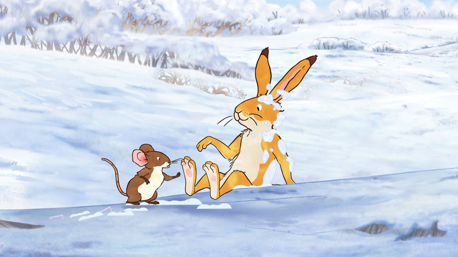 WinterschlafDer kleine braune Hase und die kleine Feldmaus spielen im Schnee.Bild: © KiKA/SLR Productions Australia Pty.Ltd./Scrawl Studios Pte Ltd./hr/ARD