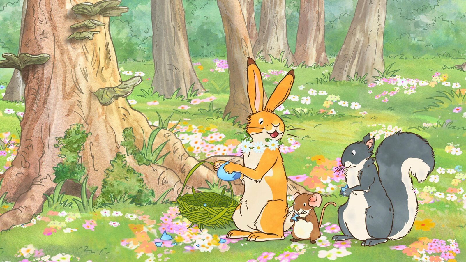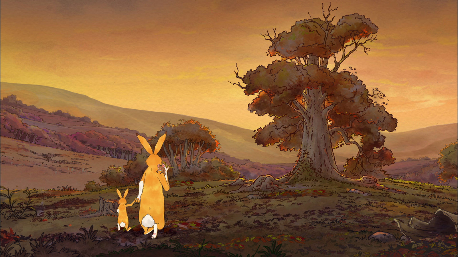 Eine Feder fürs NestGroßer brauner Hase, kleiner brauner Hase und die kleine Feldmaus machen sich auf den Weg, um das Geheimnis des Blütenbaums zu ergründen.Bild: © KiKA/SLR Productions Australia Pty.Ltd./Scrawl Studios Pte Ltd./hr/ARD
