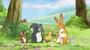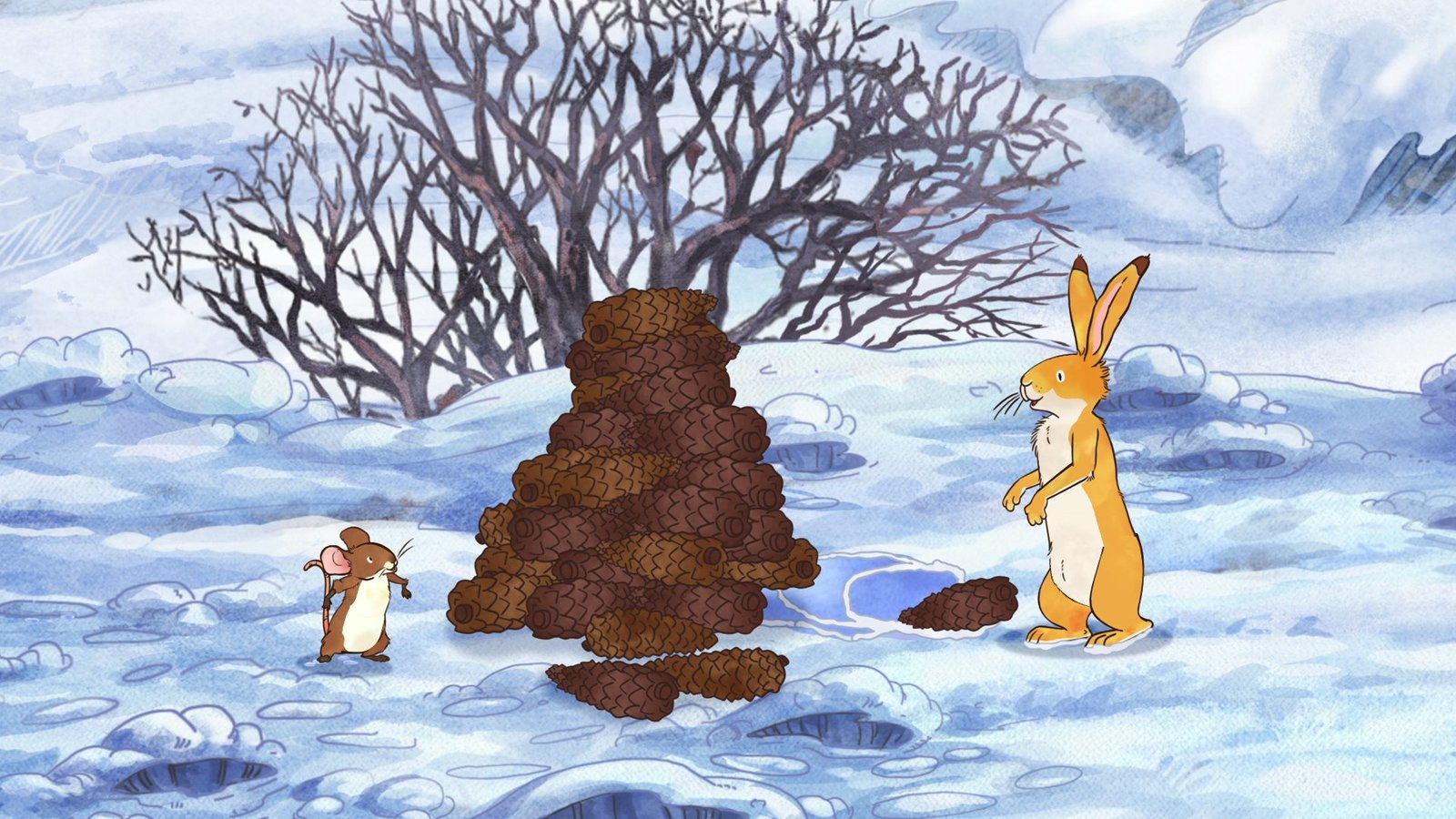 Eine Überraschung für alleAls der kleine Hase an diesem kalten Wintermorgen von der kleinen Feldmaus geweckt wird, liegt eine öberraschung vor dem Eingang des Baumstamms – ein wunderschöner Stechpalmenzweig mit roten Beeren daran.ÂBild: © KiKA/SLR Productions Australia Pty.Ltd./Scrawl Studios Pte Ltd./hr/ARD