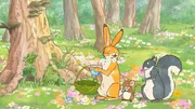 Der GlücksstockDer kleine braune Hase ist ganz stolz: Er hat einen großen Tannenzapfenbaum gebaut.Bild: © KiKA/SLR Productions Australia Pty.Ltd./Scrawl Studios Pte Ltd./hr/ARD