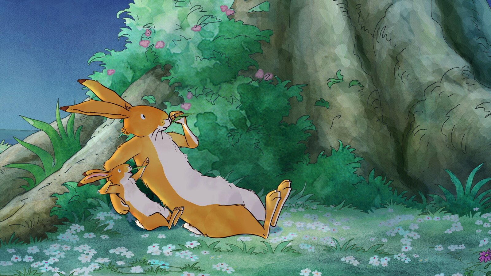 Das Lied des FrühlingsDer kleine Hase und der große Hase haben sich sehr lieb.Bild: © KiKA/SLR Productions Australia Pty.Ltd./Scrawl Studios Pte Ltd./hr/ARD