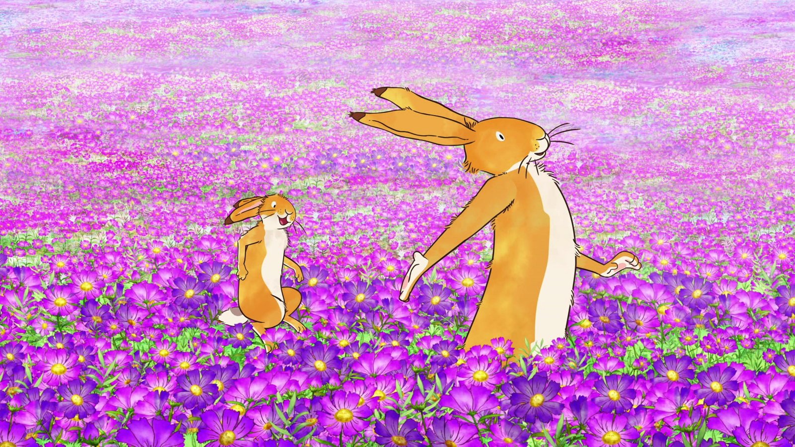 Die Gutenacht-GeschichteDer groüe und der kleine braune Hase erfreuen sich an der prächtigen Blumenwiese.ÂBild: © KiKA/SLR Productions Australia Pty.Ltd./Scrawl Studios Pte Ltd./hr/ARD