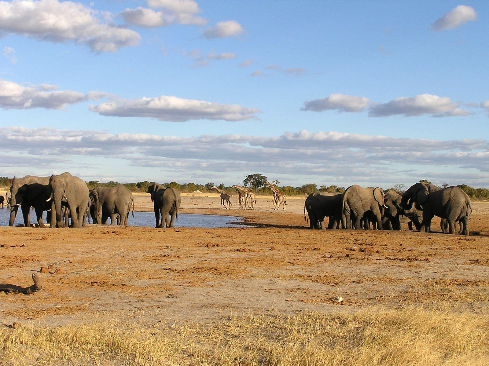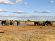 Die Elefanten von HwangeDie Elefanten an der Wasserstelle verunsichern die Giraffen.Bild: © BR/Catherine Kanhema