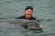 Ute Margreff und Solitär-Delfin Mara.Bild: © BR/Roland Gockel