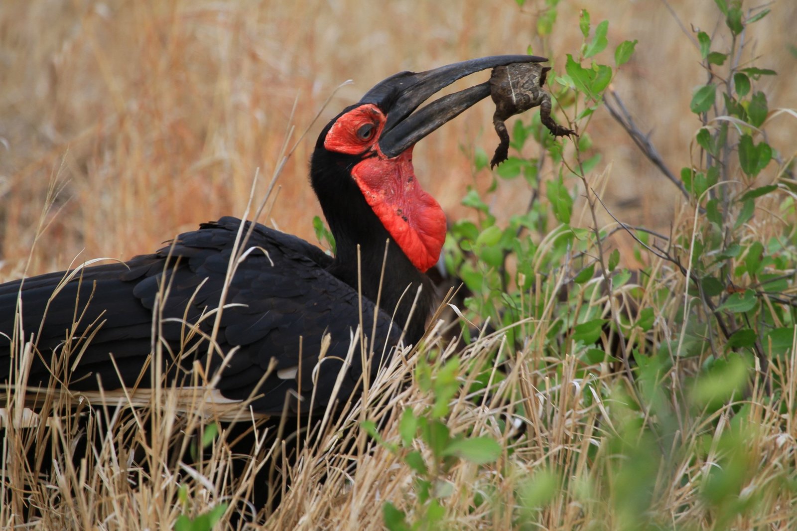Der Rabe in der TonneEr sieht aus wie ein übergroßer Puter mit gelackten schwarzen Federn und roten Wangen. Dazu kommt sein immens großer Schnabel, der ihn dazu noch gefährlich aussehen lässt: der Hornrabe.Bild: © BR/SANHU