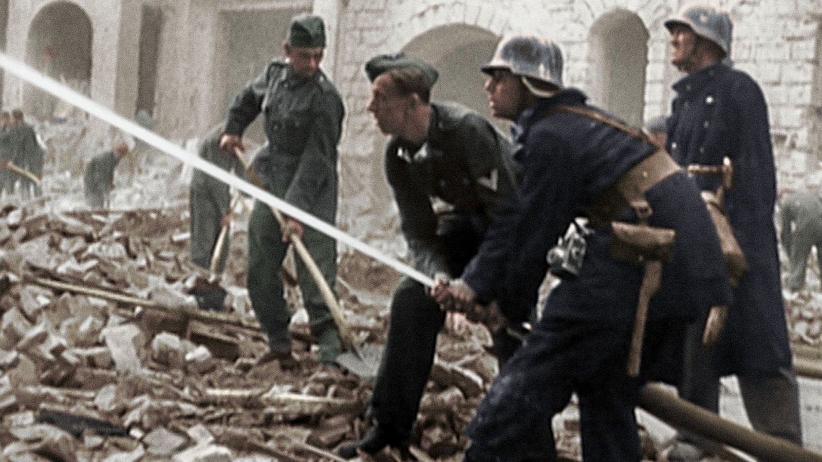 Bomben über DresdenFeuerwehr bei Löscharbeiten.Bild: © TVNOW