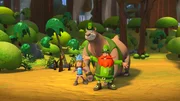 Pilze sammeln"Wickie und die starken Männer 3D", "Pilzesammeln." Wickie, Ylvi und Gilby werden losgeschickt, um Pilze zu sammeln. Gilby übertreibt in seiner Kriegsmontur mit Helm, Speer sowie Pfeil und Bogen wieder einmal maßlos. Als es zu regnen beginnt, suchen die Kinder Unterschlupf in einer Höhle, die von einem riesigen Bären bewohnt wird. Gerade noch können sie sich vor dem Tier retten und auf einen Baum klettern. Der Bär macht aber keine Anstalten, die Drei wieder in Ruhe zu lassen, und Ylvi wird plötzlich von zunehmenden Magenschmerzen geplagt.Bild: © ORF/Studio 100 Media
