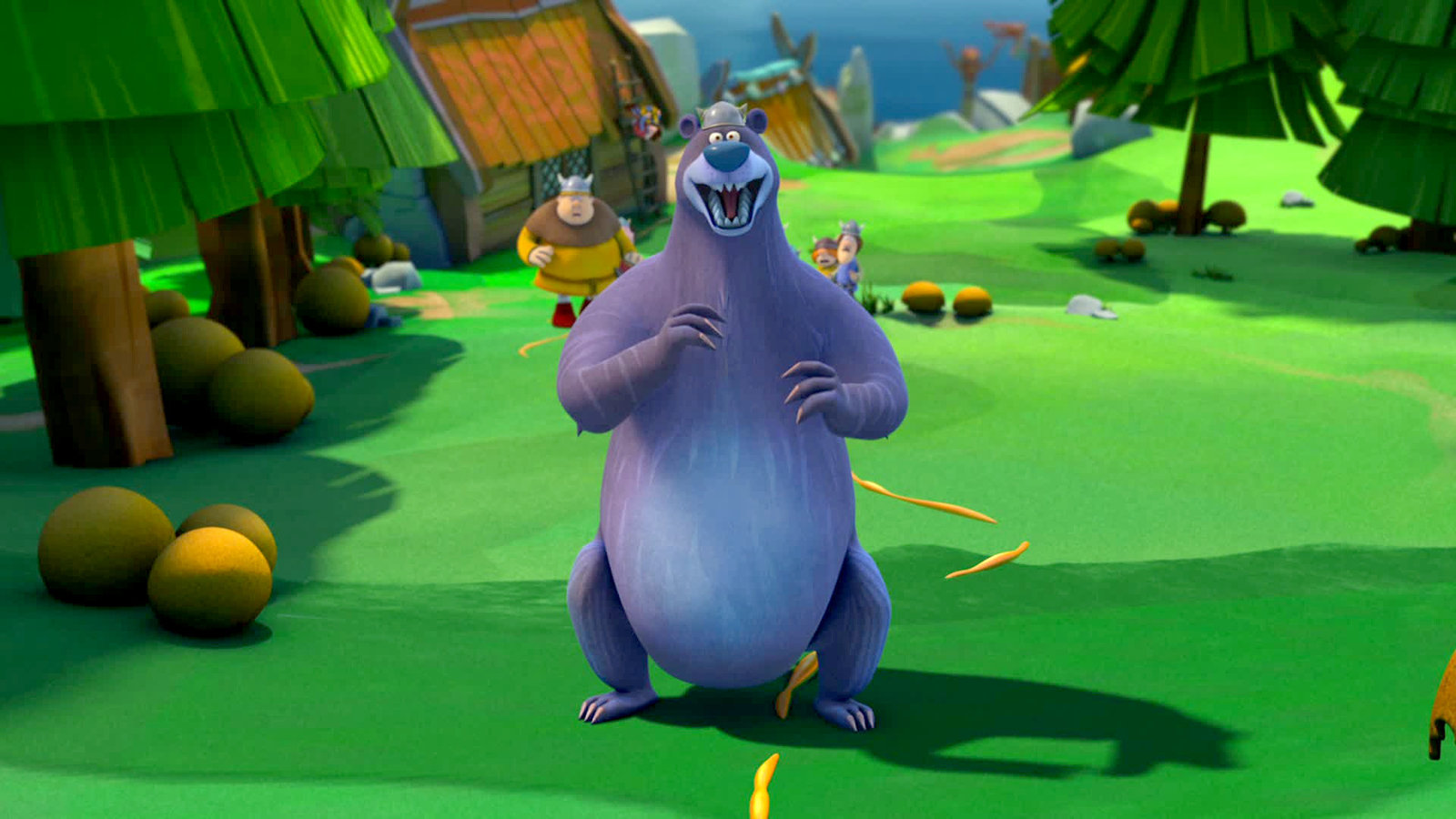 Bärenalarm"Wickie und die starken Männer 3D", "Bärenalarm." Ulmes Gesangskünste schmerzen in den Ohren der Einwohner von Flake. Auch Halvar hat endgültig genug davon, was Ulme nicht einsehen will und worauf er seinem Chef die Freundschaft kündigt. Trotzig klettert er auf das Dach eines Hauses und setzt seinen Gesang fort. Ein Fan findet sich doch - ein riesiger, gefährlich aussehender Bär stampft ins Dorf, um Ulme seine Ehrerbietung zu erweisen. Die Wikinger bringen sich in Sicherheit, doch plötzlich stellt Tjure fest, dass sein Sohn noch im Dorf ist.Bild: © ORF