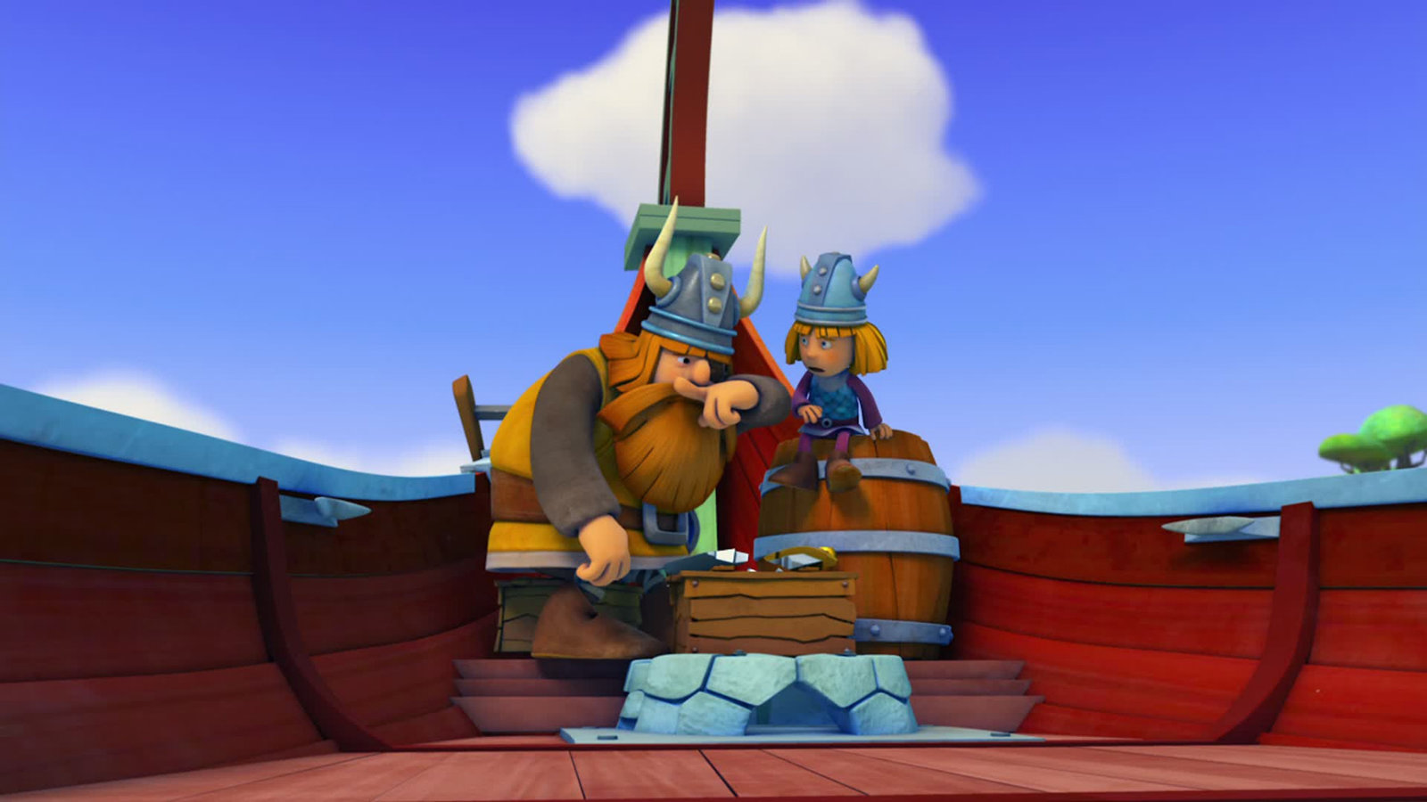Der Wegezoll"Wickie und die starken Männer 3D", "Der Wegezoll." Auf einem mit erbeuteten Schätzen berstend vollen Drachenboot sind die Wikinger auf dem Weg Richtung Flake. Weil sie lieber noch heute als morgen im heimatlichen Hafen anlegen wollen, beschließen sie, eine Abkürzung durch einen schmalen Kanal zu nehmen. Dieser wird jedoch vom dänischen König kontrolliert, und ein Wegzoll ist fällig für jeden, der ihn passiert. Halvar denkt nicht daran, für die komfortable Abkürzung auch noch zu bezahlen. Aber wie sollen sie sonst an der dornenbewehrten Kette vorbeikommen, die den Kanal absperrt?Bild: © ORF