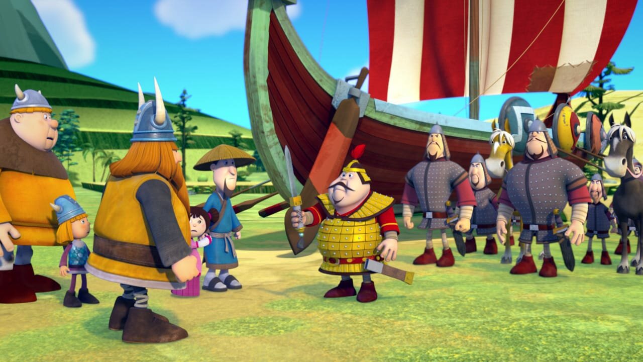 Das große Chinaabenteuer (3): Aufruhr im BambuswaldDer chinesische General hat die Wikinger scharf im Visier.Bild: © ZDF/studio 100media