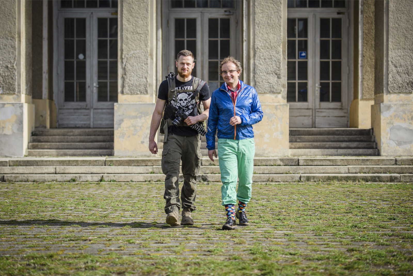 Die GruselklinikWigald Boning (L) and Friedrich 'Fritz' Meinecke pose on the set during the shooting for the new local production 'Wigald & Fritz - Die Geschichtsjaeger' by the German TV channel HISTORY on June 7, 2016 in Bad Berka, Germany.Bild: © History