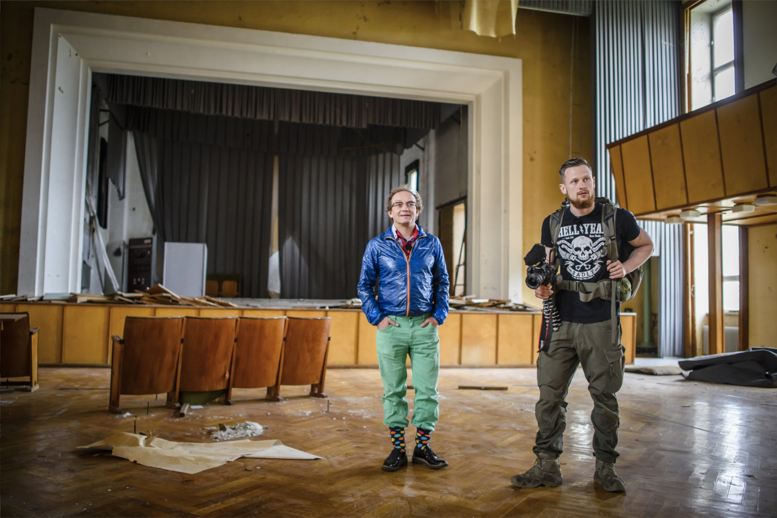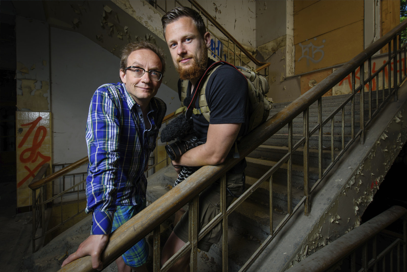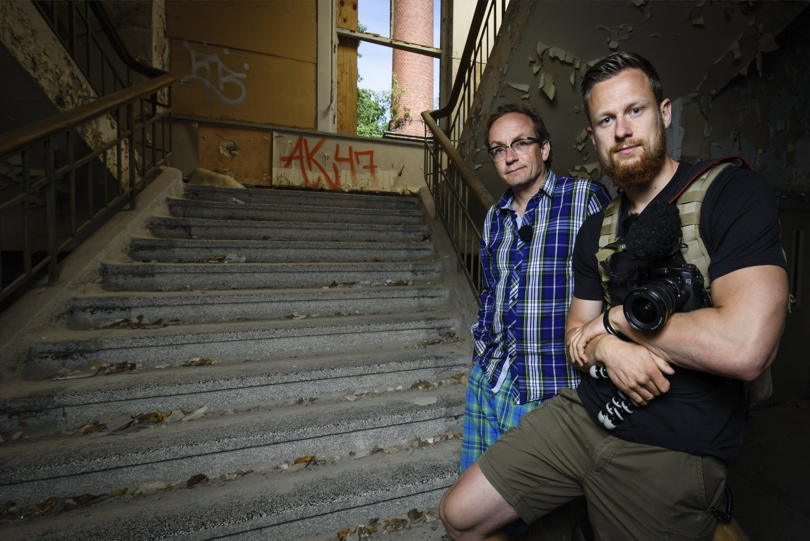 Todeszone TschernobylFritz Meinecke and Wigald Boning are seen on set during the shooting for the new local production 'Wigald & Fritz - Die Geschichtsjaeger' by the German TV channel HISTORY on April 12, 2016 in Pripyat, Ukraine.Bild: © History