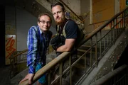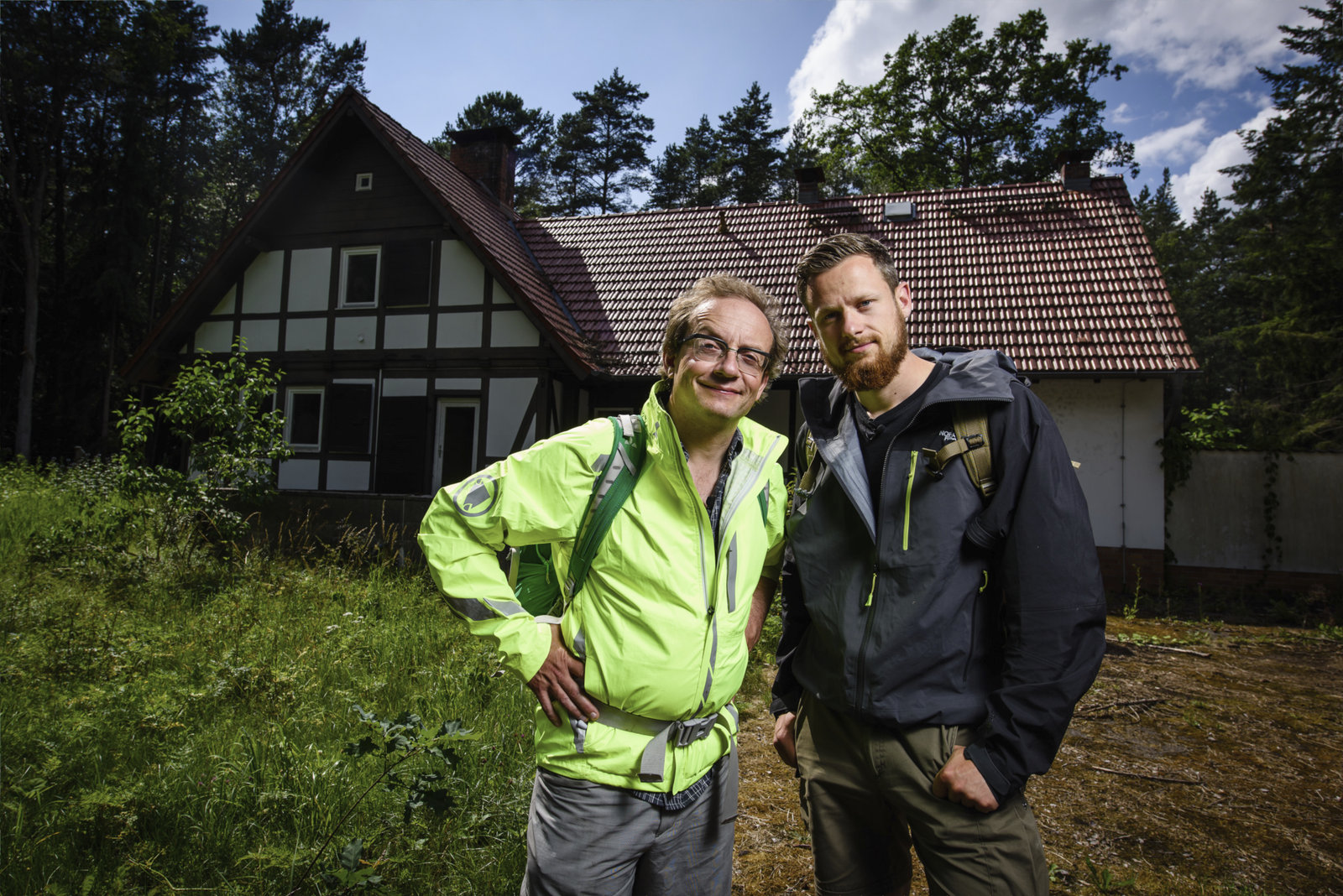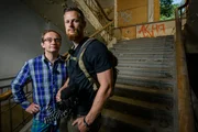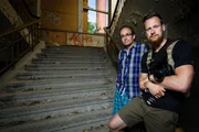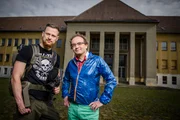 Hitlers RaketenschmiedeWigald Boning (L) and Fritz Meinecke pose on set during the shooting at the Schorfheide for the new local production 'Wigald & Fritz - Die Geschichtsjaeger' by the German TV channel HISTORY on July 5, 2016 in Peenemuende, Germany.Bild: © History