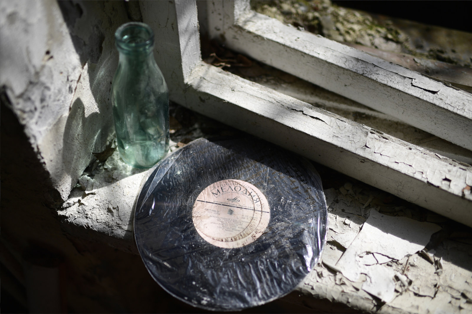 Todeszone TschernobylA vinyl disc lies inside an abandoned school at a military complex close to the <Bild: © History
