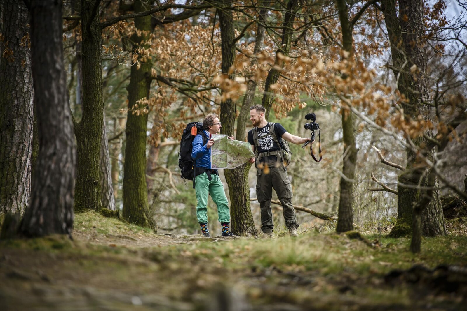 Das Jagdgebiet der MächtigenWigald Boning (L) and Friedrich 'Fritz' Meinecke on the set during the shooting at the Schorfheide for the new local production 'Wigald & Fritz - Die Geschichtsjaeger' by the German TV channel HISTORY on June 28, 2016 in Eberswalde, Germany.Bild: © History
