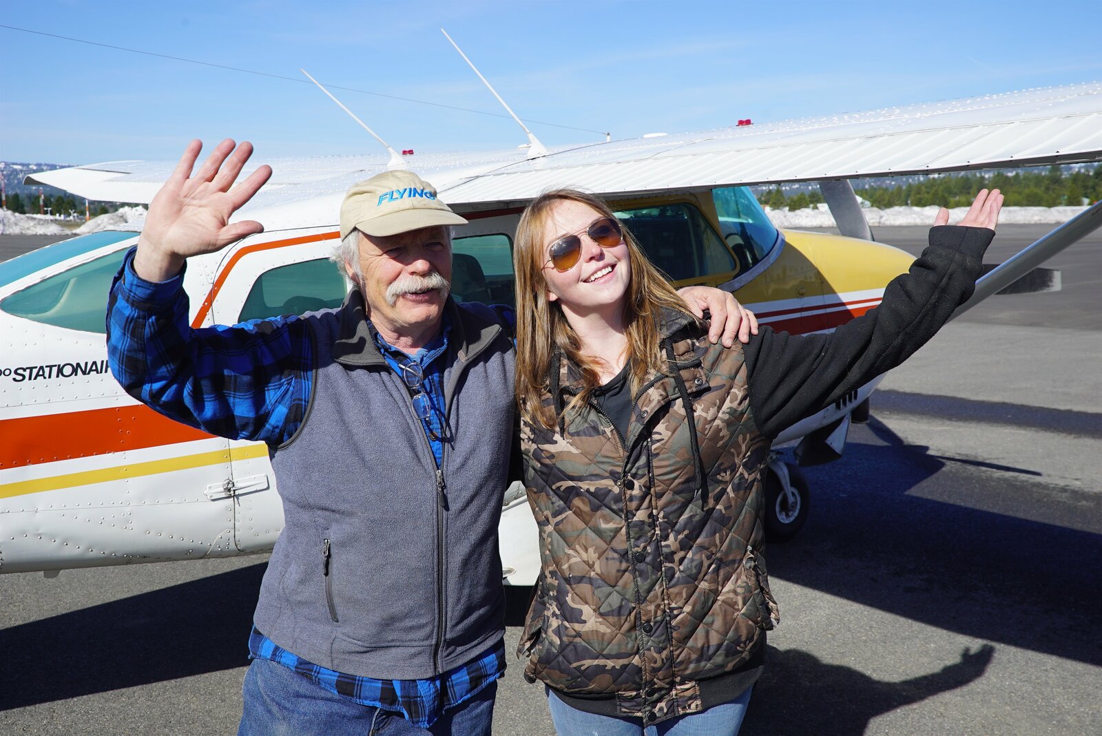 Die FeuertaufeL-R: Mike Dorris and Katie Dorris waving and smiling in front of plane at Sawtooth air.Bild: © Discovery Channel / Discovery Communications, LLC