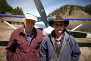 Die FeuertaufeL-R: Ron Ens and Mike Dorris (pilot) posing in front of airplane before heading to Tappan Cabin.Bild: © Discovery Channel
