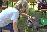 Von molligen Bären und angesagten BienenWaschbären im Wohnzimmer? Die meisten würden sie nicht mal im Garten wollen! Ganz anders Gaby Müller, die mit gleich vier Waschbären zusammenlebt. Die Neuköllnerin sieht sich als Vermittlerin zwischen Mensch und Waschbär. Gemeinsam mit Waschbär Molly veranstaltet sie spannende Erlebnistage für Berliner Stadtkinder. Dass Waschbären keine Kuscheltiere sind, scheint aber nicht bei jedem Kind anzukommen. - Molly wird von einem Kind gestreichelt.Bild: © rbb/DOKfilm