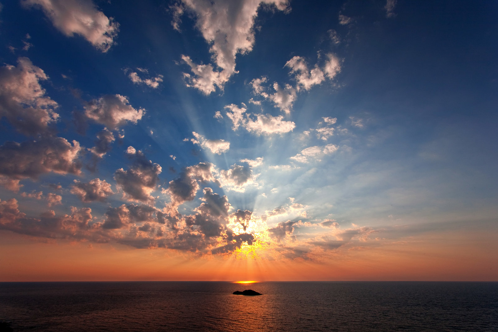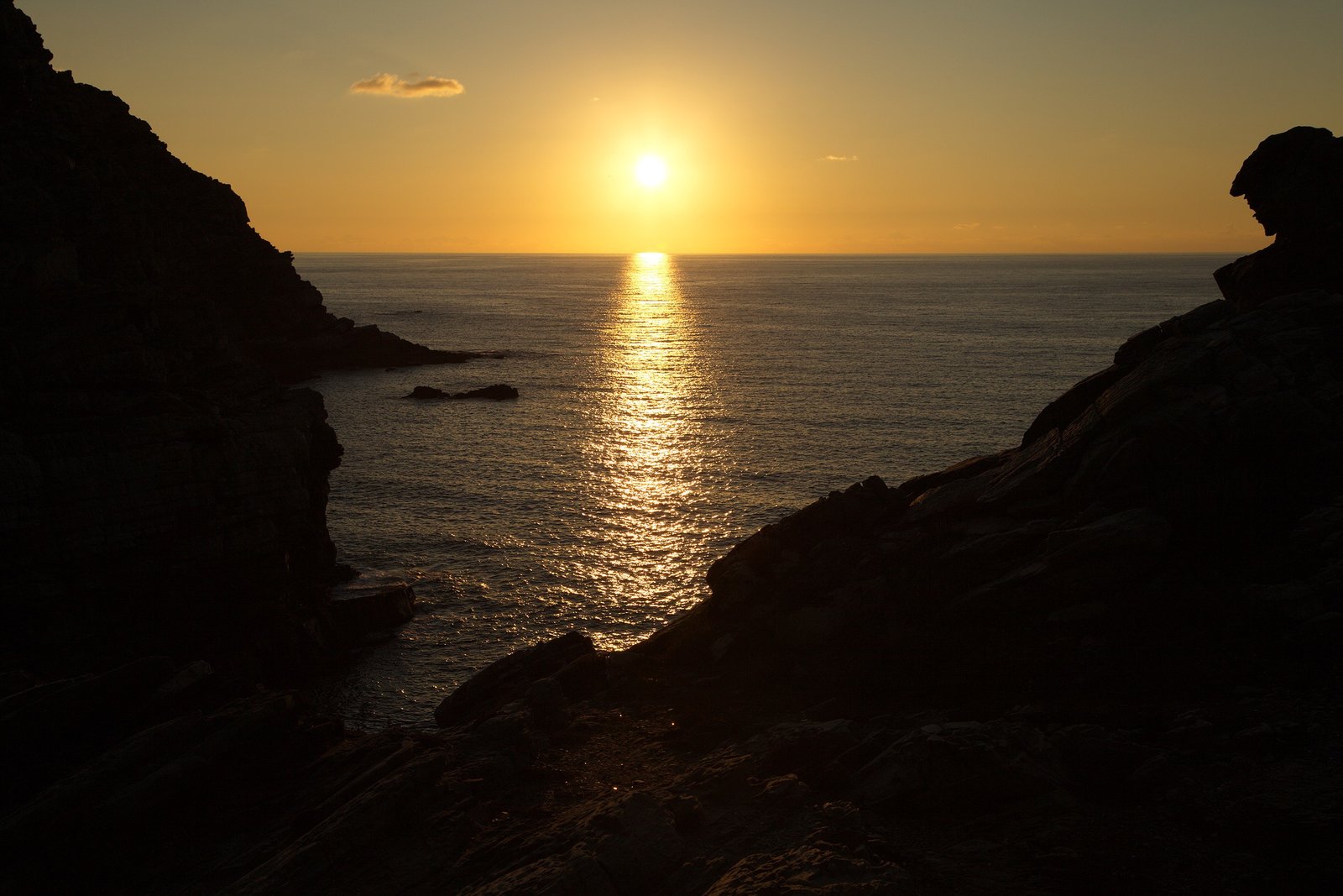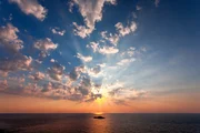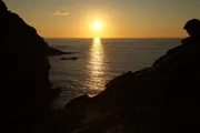 Von Sardinien zu den AbruzzenSonnenuntergang an der Felsenküste Sardinien. Wenn bei Sardinien die rote Sonne im Meer versinkt.Bild: © ORF III