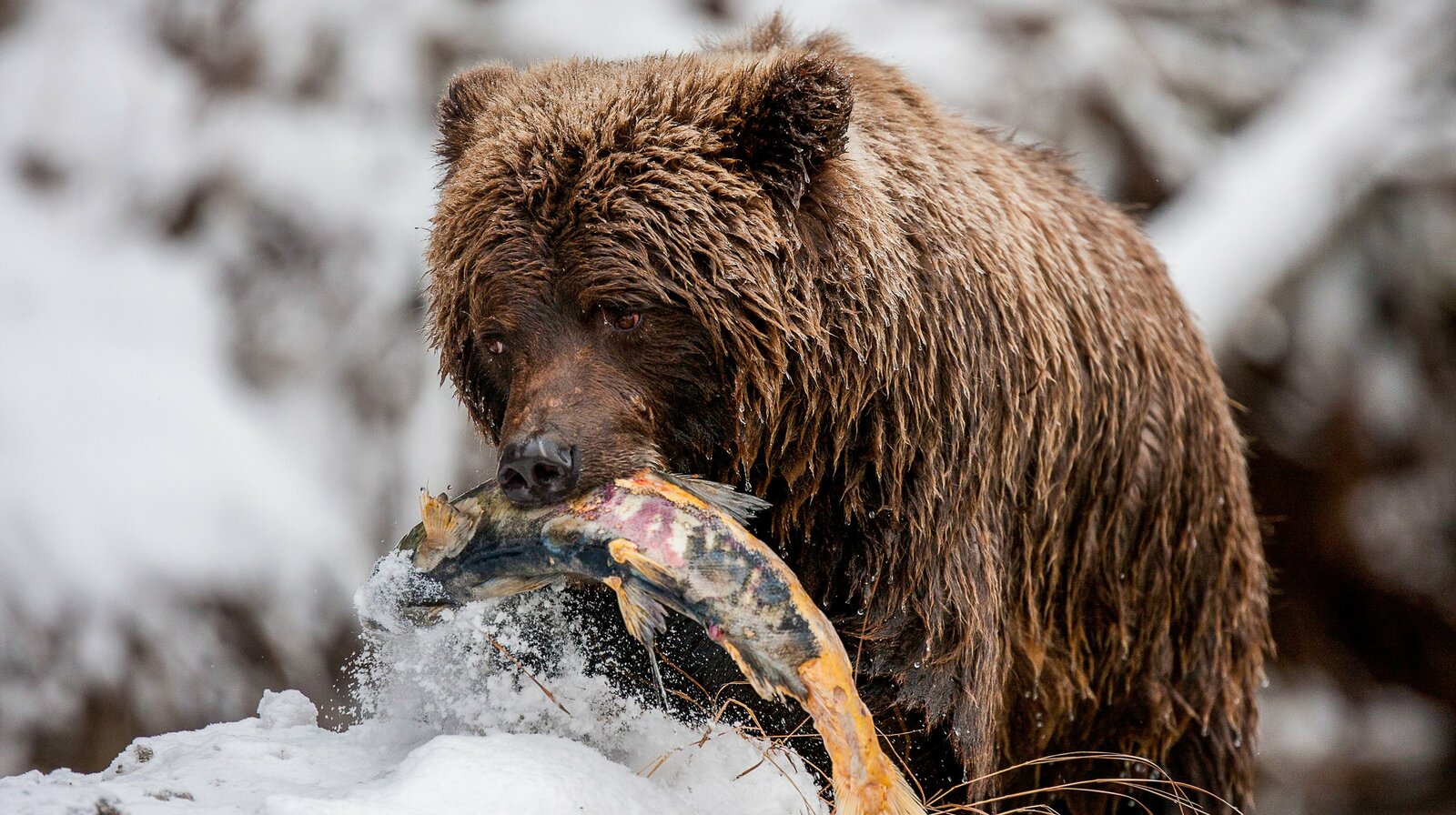 Der Wilde WestenEin Grizzlybär hat einen Ketalachs erbeutet.Bild: © WDR/Brian Leith Productions/Kieran O'Donovan