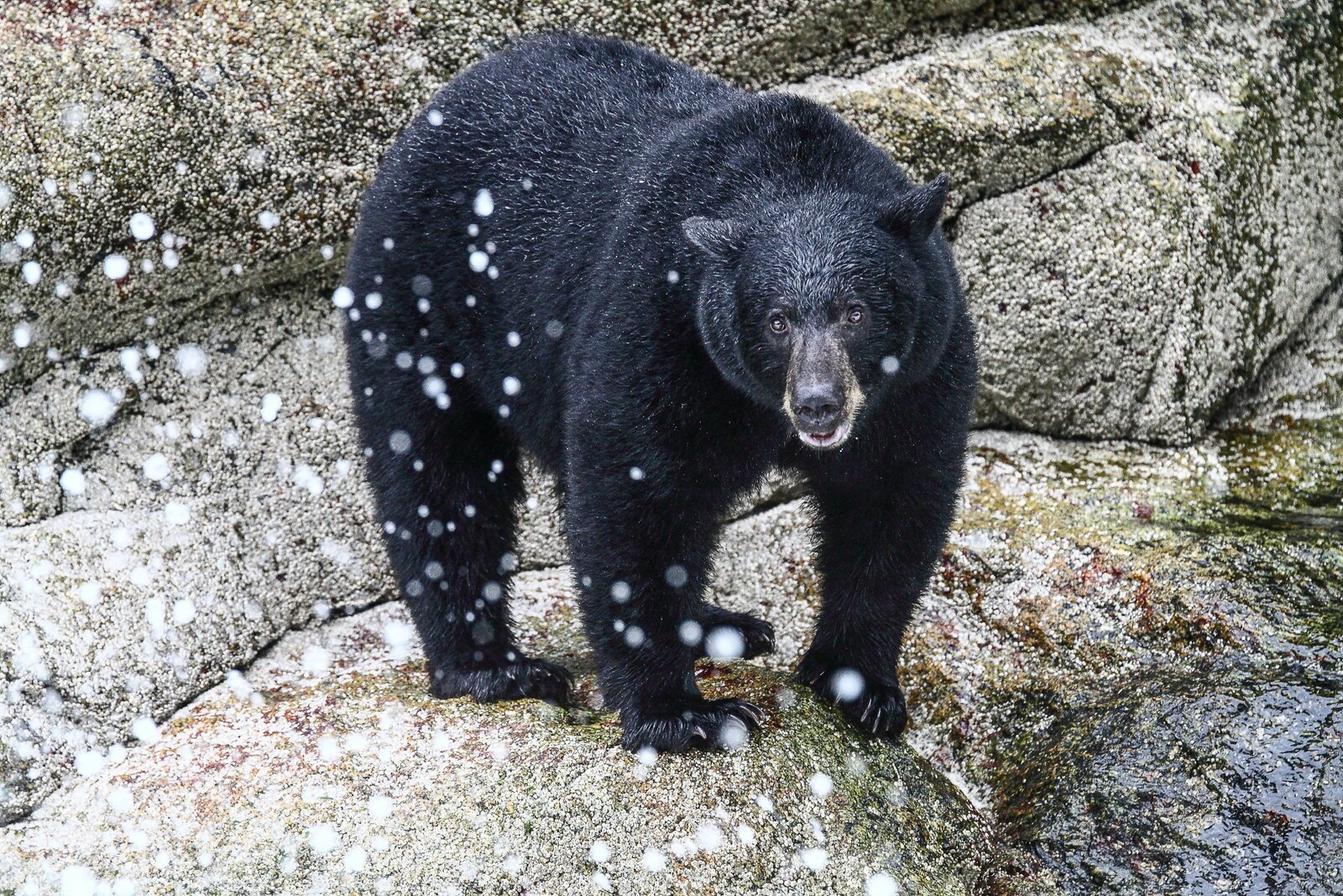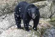 Der Wilde WestenEin Schwarzbär auf einem Felsen neben einem WasserfallBild: © TVNOW / © Brian Leith Productions / Terra Mater_Logan Turner