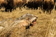 Die endlose WeiteReenactment: Ein Jäger mit Wolfshaut getarnt schleicht sich an eine Büffelherde anBild: © TVNOW / © Brian Leith Productions / Terra Mater_Amanda McNaughton