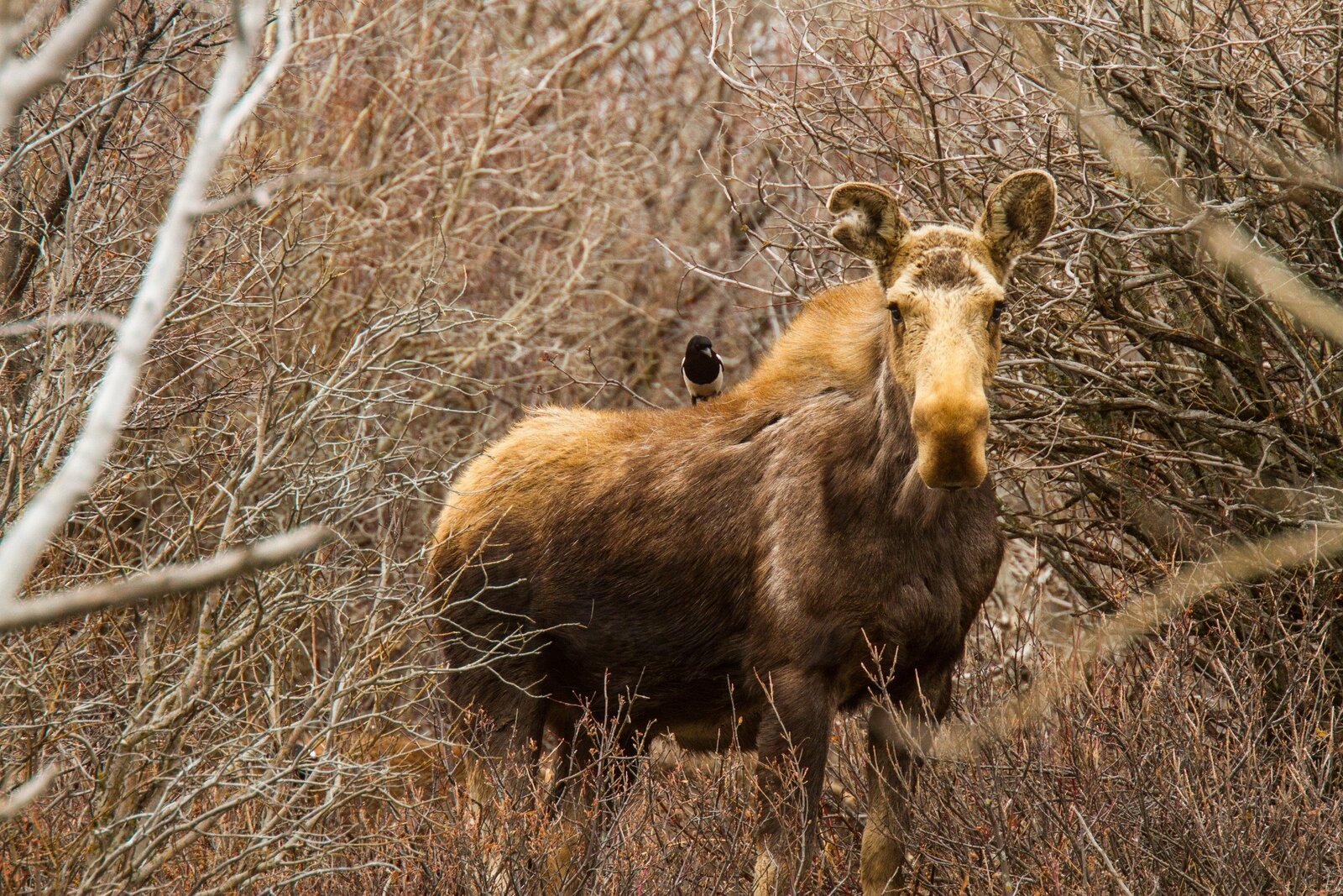Die endlose WeiteElchkuh mit Hudson-Elster am RückenBild: © TVNOW / © Brian Leith Productions / Terra Mater_Amanda McNaughton