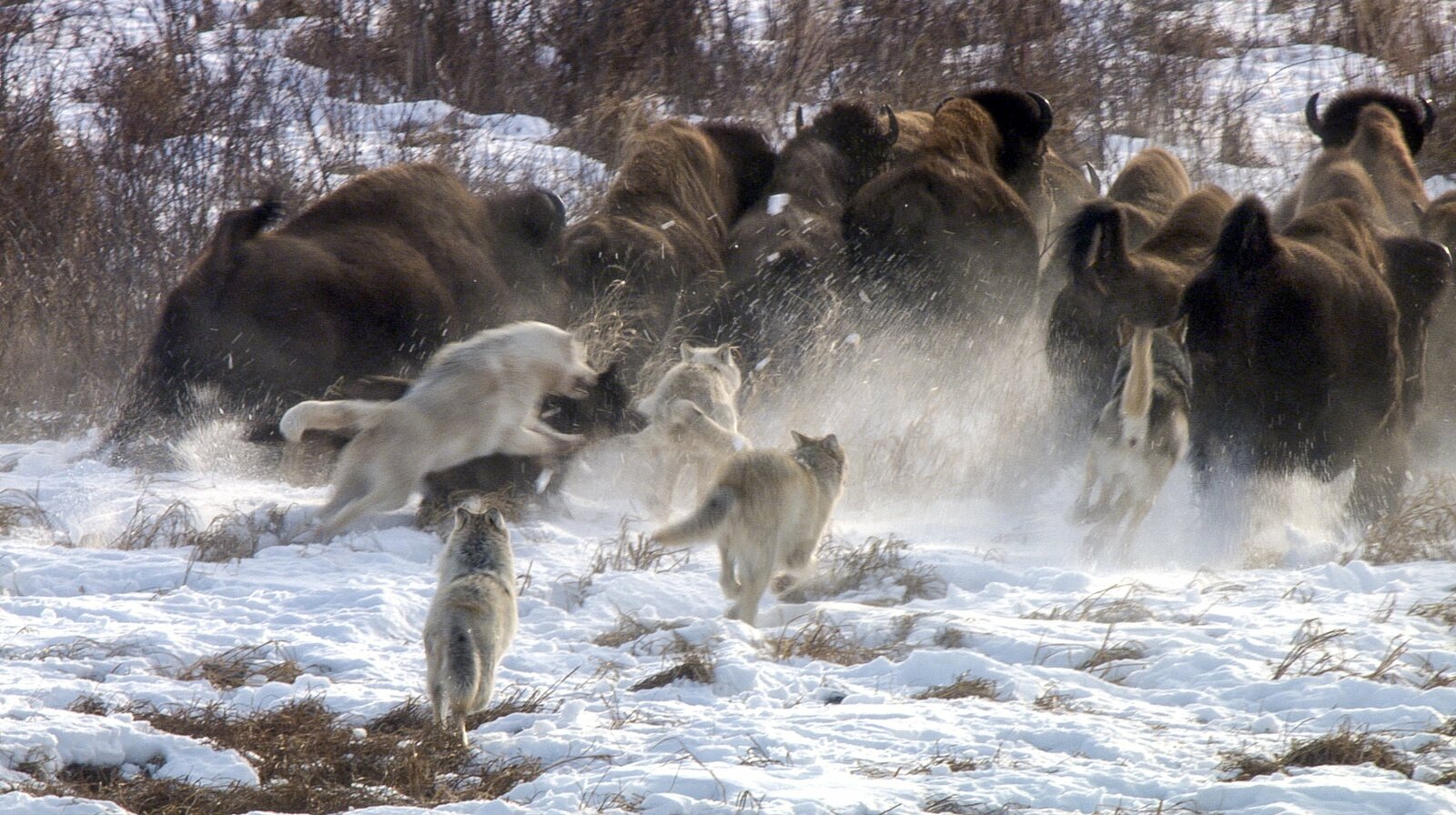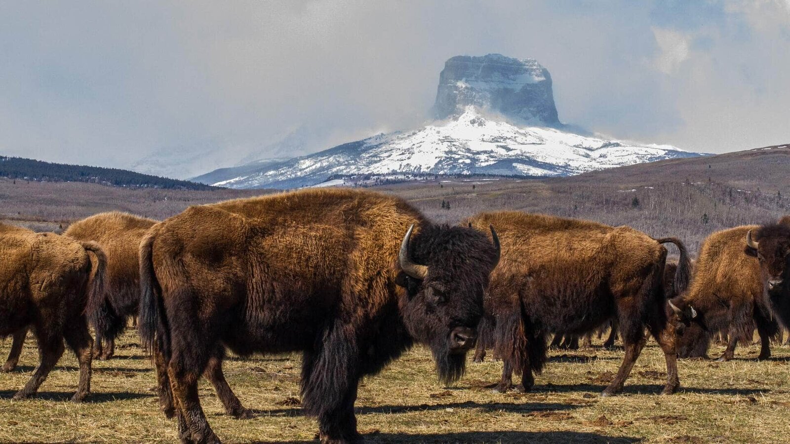 Die endlose WeiteDie Prärie ist die Heimat eines der markantesten Tiere Nordamerikas - den Bisons. (im Hintergrund das Gebirgsmassiv Castle Mountains)Bild: © RTL / © Brian Leith Productions / Terra Mater_ Amanda McNaughton