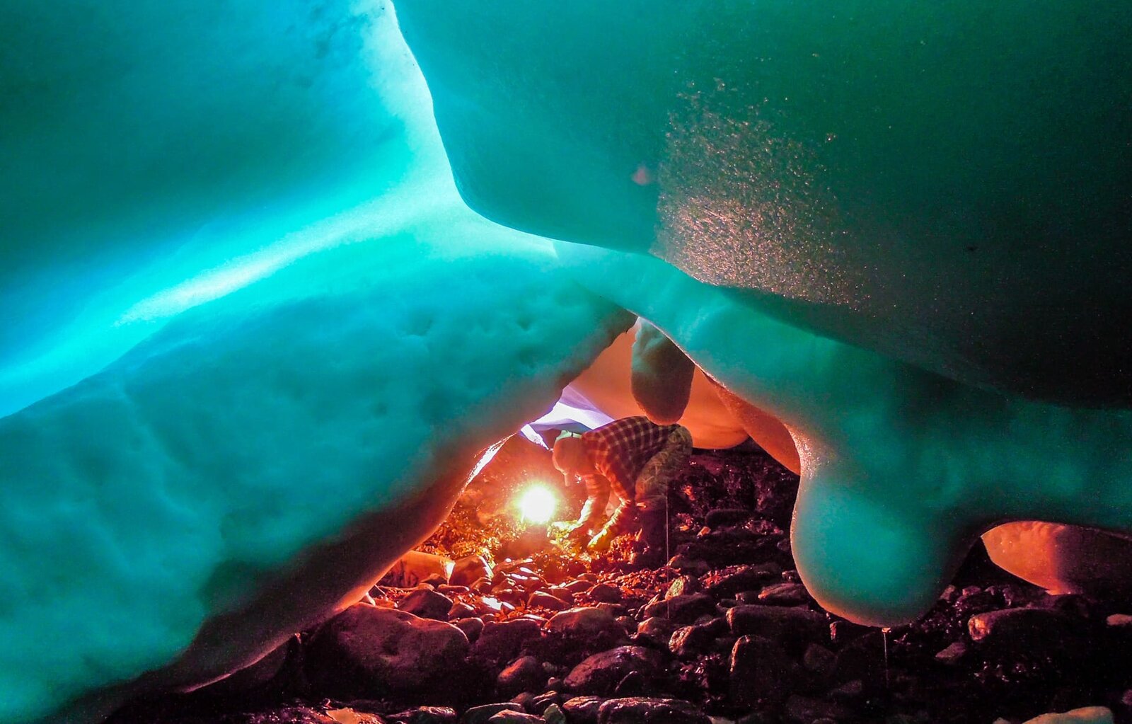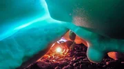 Der hohe NordenDas Packeis hat unterirdische Höhlen gebildet: Ein Inuit-Jäger sammelt unter dem Eis Muscheln, eine wichtige Eiweißquelle.Bild: © RTL / © Brian Leith Productions / Terra Mater_Justin Maguire