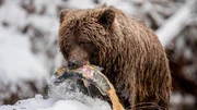 Der Wilde WestenEin Grizzlybär hat einen Ketalachs erbeutet.Bild: © TVNOW / © Brian Leith Productions / Terra Mater_Kieran O'Donovan