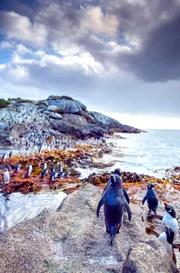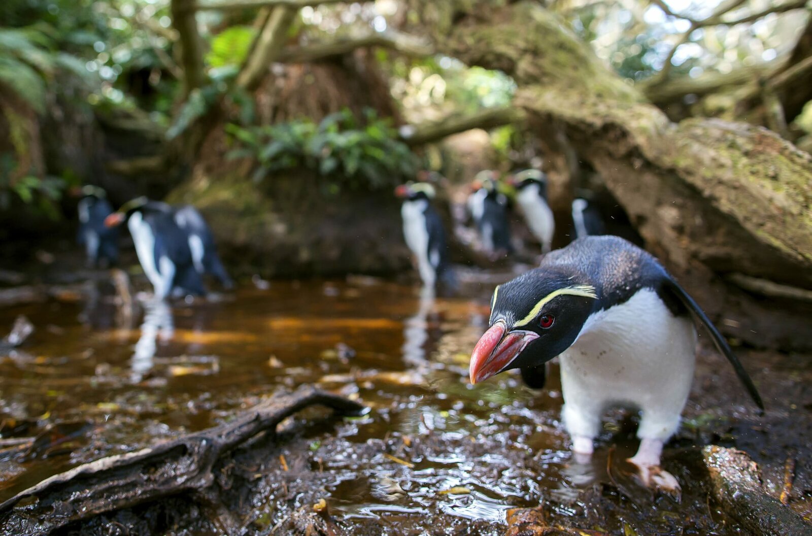 Inseln am Rande der WeltSnarespinguine haben auf Snares Island im Süden Neuseelands mit ihren kleinen Füßen ein Labyrinth aus Wegen in den Wald getreten. Über Stock und Stein legen sie alljährlich bis zu einen Kilometer Strecke zurück, um zu ihrer Brutkolonie im Wald zu gelangen.Bild: © phoenix/NDR/BBC/Mark MacEwen