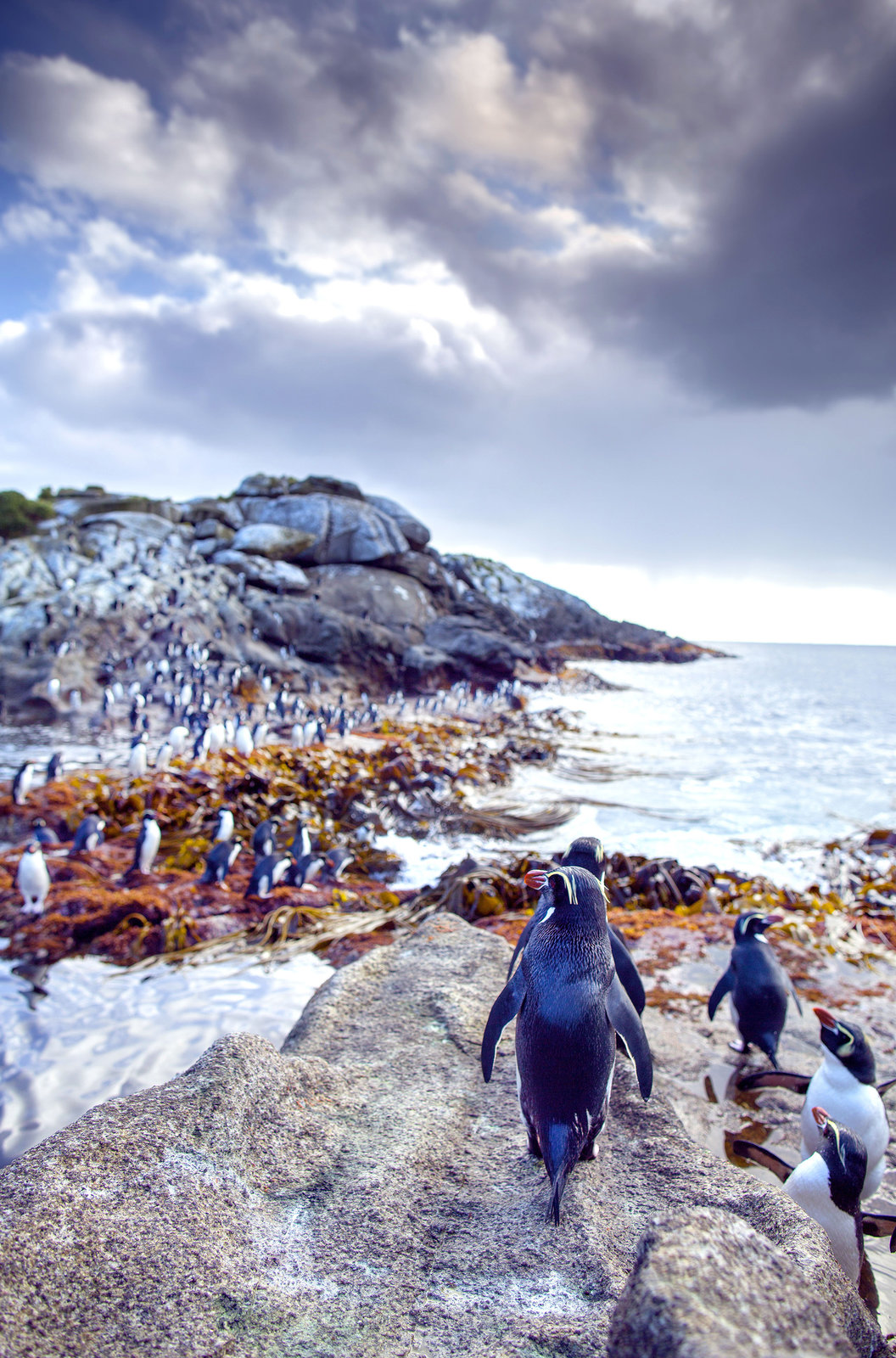 Inseln am Rande der Welt6: Die Küste der Snaresinseln: Um zu ihren Brutkolonien im Wald zu gelangen, müssen Snaresinselpinguine zuerst die bis zu 130 Meter steile Küste der Insel überwinden.Bild: © NDR/BBC/Mark MacEwen