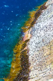 Inseln am Rande der WeltDie Küste von Snares Island. Um zu ihren Brutkolonien im Wald zu gelangen, müssen Snarespinguine zuerst die bis zu 130 Meter steile Küste der Insel überwinden.Bild: © phoenix/NDR/BBC/Mark MacEwen