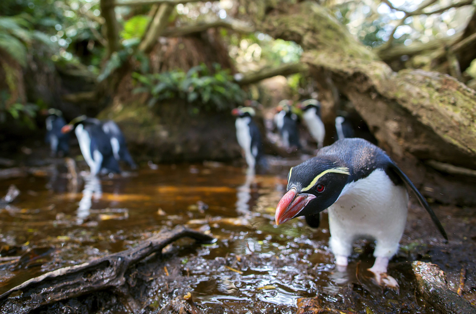 Inseln am Rande der WeltSnarespinguine haben auf Snares Island im Süden Neuseelands mit ihren kleinen Füßen ein Labyrinth aus Wegen in den Wald getreten. Über Stock und Stein legen sie alljährlich bis zu einen Kilometer Strecke zurück, um zu ihrer Brutkolonie im Wald zu gelangen.Bild: © ZDF und NDR/BBC/Mark MacEwen.