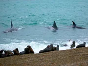 Das Ende der WeltWeibliche Orca Wale lernen von ihren Müttern wie man Seerobben am Strand jagt.Bild: © phoenix/ZDF/BBC