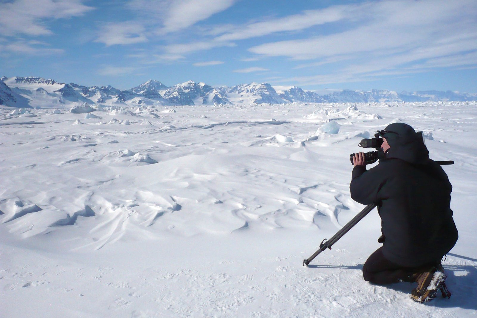 Grönland - Das Reich der EisbärenVom Meereis aus filmt Tierfilmer Uwe Anders die Küstenlinie Grönlands.Bild: © phoenix/NDR/Uwe Anders