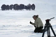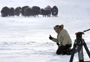 Von Dänemark bis zum Nordkap - Das AbenteuerSzene im Kasten! Naturfilmer Jan Haft ist Kameramann und Biologe aus Leidenschaft. Die Dreharbeiten mit Moschusochsen sind nicht ungefährlich. Die kräftigen Tiere sind äußerst wehrhaft.Bild: © BR/NDR/Jan Haft