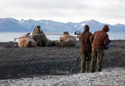 Von Dänemark bis zum Nordkap - Das AbenteuerWalrossbullen sind äußerst wehrhaft und riesig - ausgewachsene Männchen können über drei Meter lang und über 1.000 Kilo schwer werden. Mit Hilfe eines Leichtkrans gelingen dem Team sensationelle Nahaufnahmen.Bild: © NDR/NDR/Jan Haft