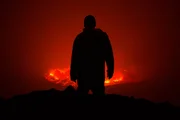 SchutzschildProf. Ken Sims of the University of Wyoming looking over a lava crater at Mount Nyiragongo. Lava from this volcano is a window into the center of the Earth, and surprisingly tells us about a global system that keeps life here safe from the Sun?s deadly radiation. (photo credit: National Geographic)Bild: © National Geographic
