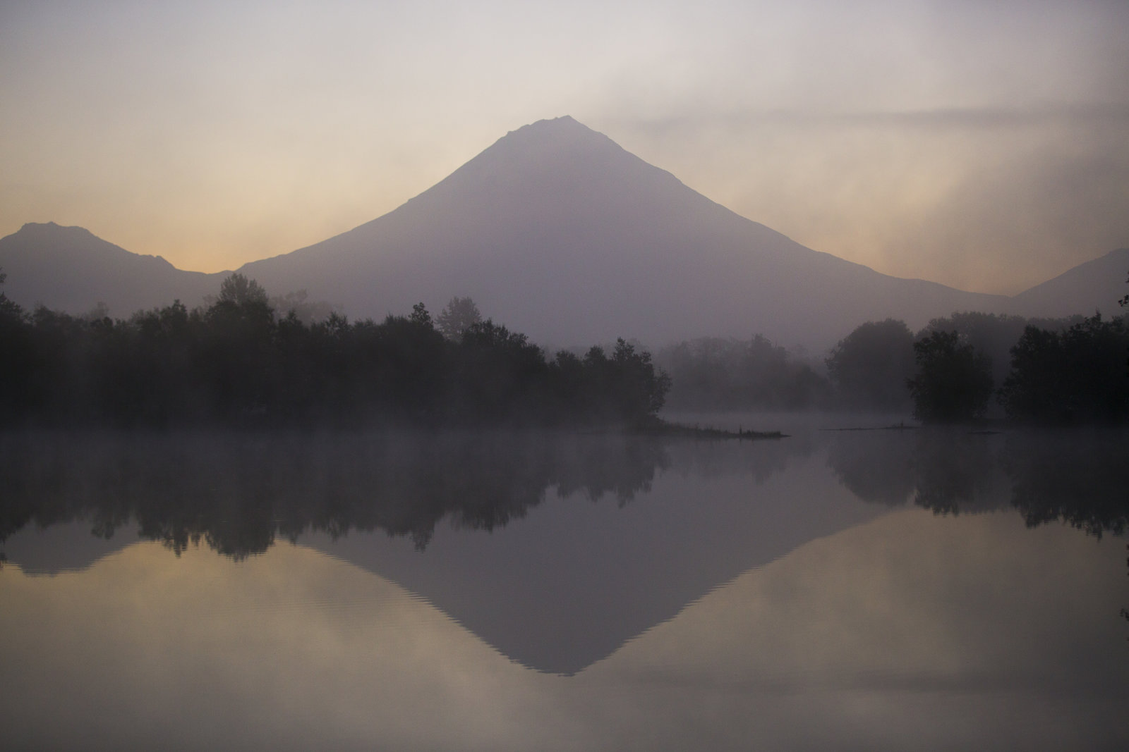 ÜberlebenKamchatka, Eastern Russia - The sun begins to rise behind an active volcano in far Eastern-Russia. Sometimes known as the ?Land of Ice and Fire?, the Kamchatka peninsula is home to the greatest concentration and diversity of Salmonid fish on Earth.Bild: © National Geographic