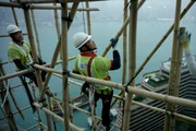 Leben10 Meter lange Bambusstangen werden in Hong Kong von Hand über fünf Stockwerke nach oben gereichtBild: © NatGeo / Fox