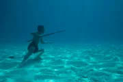 FluchtKabalutan, Central Sulawesi, INDONESIA - Fandi, an expert Bajau Laut fisherman, shows the OSR crew his freediving prowess as he hunts for fish with his handmade spear gun. (photo credit: National Geographic)Bild: © National Geographic