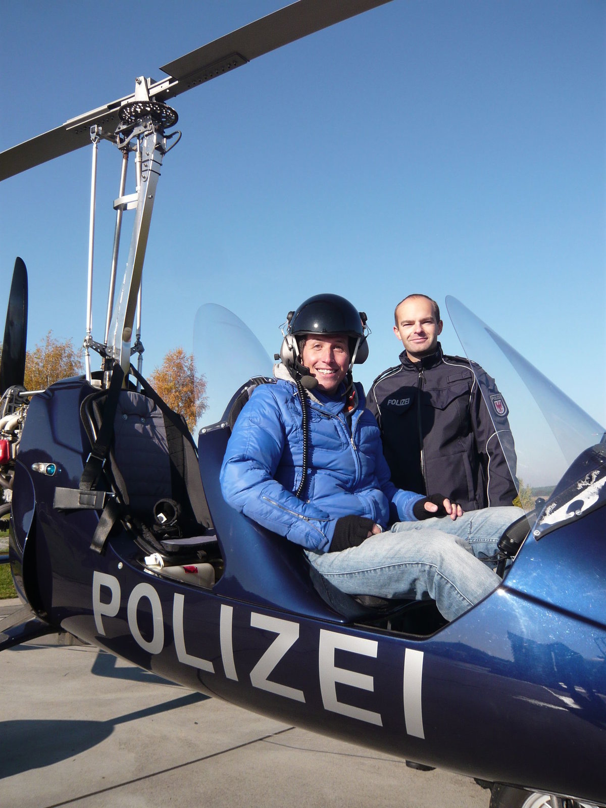 Tolle Technik - Rettung aus der Luft!Willi (links) im Gyrocopter mit Polizist Sebastian Seidl.Bild: © BR/megaherz gmbh