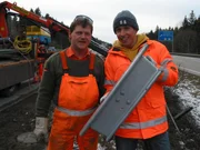 Wohin rollt die Blechlawine?Willi und Andreas mit Stahlschutzplanken. Willi beschäftigt sich heute mit den Menschen, die helfen, dass der Verkehr auf den Autobahnen ungehindert rollt.Bild: © BR/megaherz