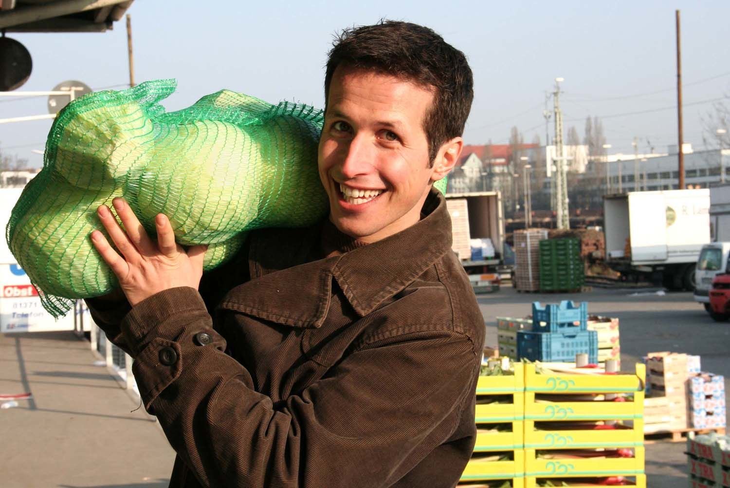 Essen ist fertig!Willi mit einem Sack voller Kohlköpfe auf dem Großmarkt in München. Morgens um 5 Uhr ist hier schon richtig viel los!Bild: © BR/megaherz gmbh