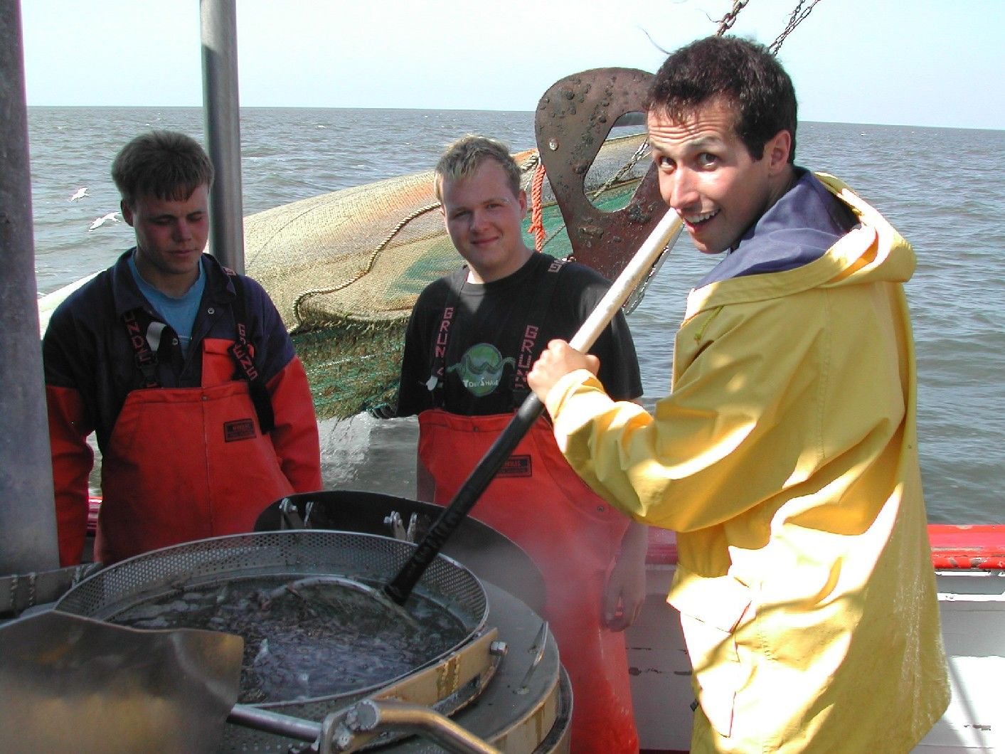 Alles in Butter auf dem Krabbenkutter!Willi Weitzel auf einem Krabbenkutter in der Nordsee. Hier werden die Krabben direkt nach dem Fang gekocht, um sie haltbarer zu machen.Bild: © BR/megaherz